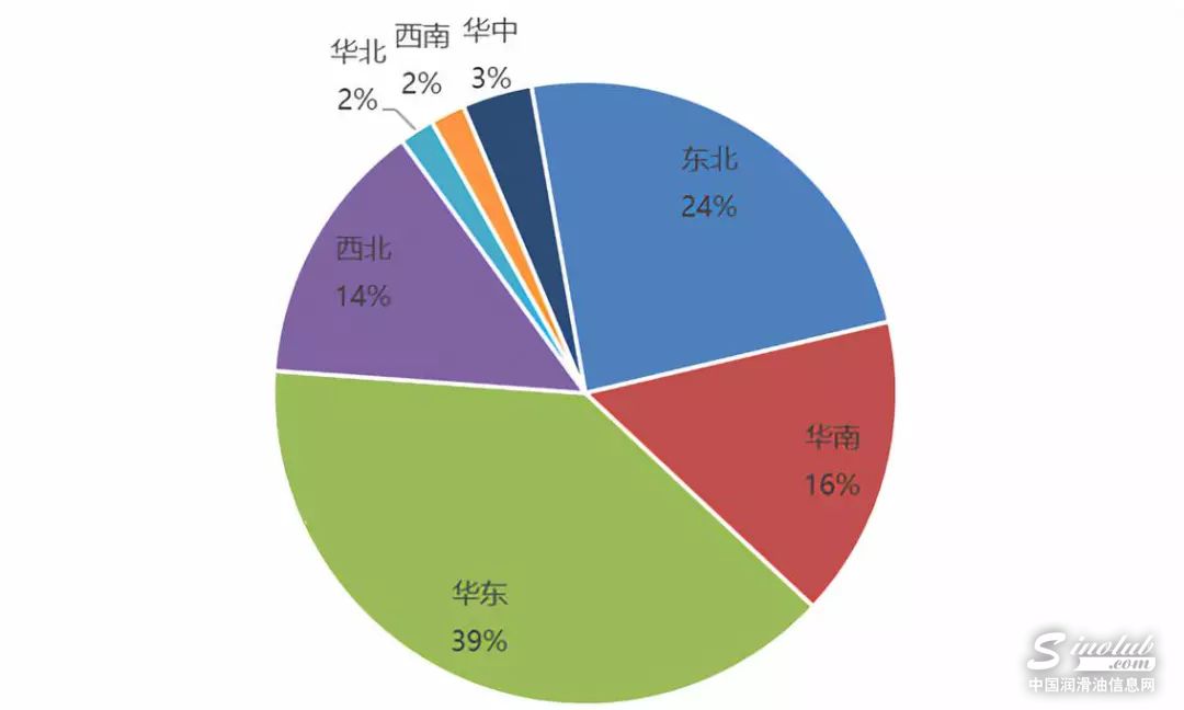 截止到2018年上半年,国内基础油总产能在830万吨,其中华东地区产能占比最大,产能在325万吨,不仅由于其优越的地理位置优势,该地区拥有太仓、南通、镇江等多个港口,而且下游民营较大润滑油企业以及合资润滑油公司也集中于该地区,例如江苏高科石化、江苏龙蟠、山东源根石化、埃克森美孚(太仓)石油有限公司、浙江壳牌化工等。