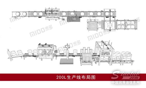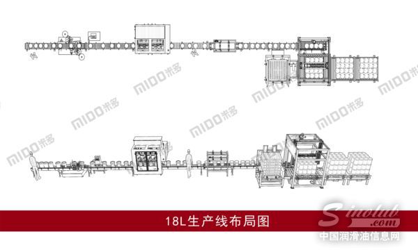 在与上海某润滑油工厂的合作中,米多提供了1-4L、18L、200L全规格共3条全自动智能型流水线,可满足了对方量产化、无人话,集成化生产的需要。其中1-4L灌装线,采用了国内顶尖技术,灌装精度首次突破达到±1克,同时配备协调光电和整线联锁等装置,整线切换规格无需工具,简单方便;18L灌装线线,能够对每一个头的灌装量进行灌装设置和单个微量调整,可以在生产过程中,有效解决灌装过程中的喷溅、灌装精度偏大的问题,提高灌装效率;200L灌装线,设备组成简洁,输送部分可缓存大量空桶,保证生产的持续性,提高了生产能力,自动化程度高。