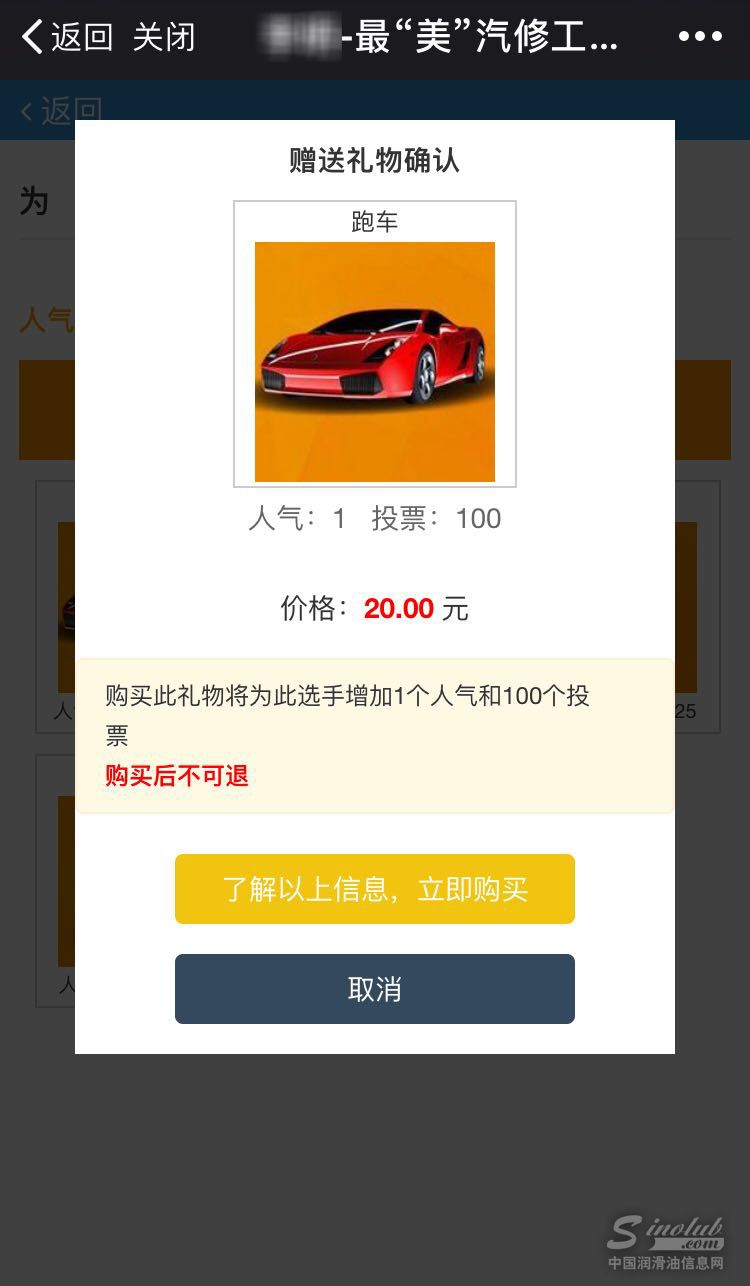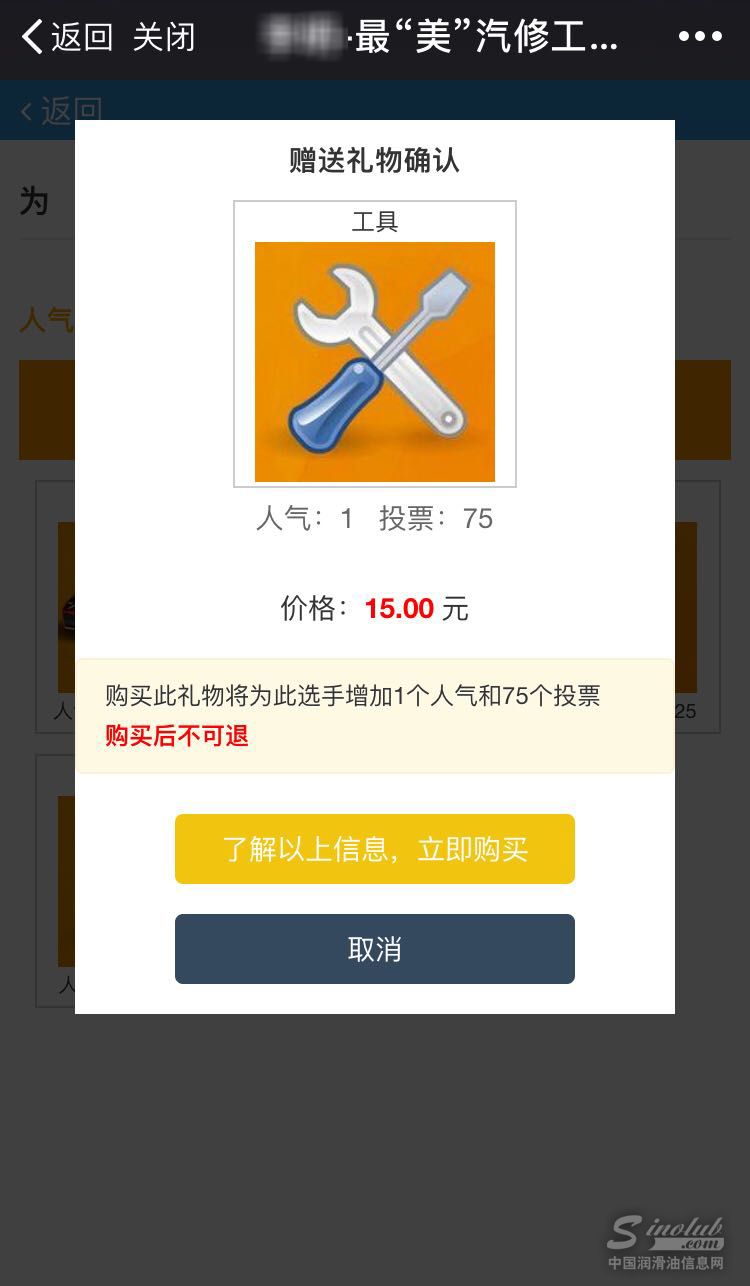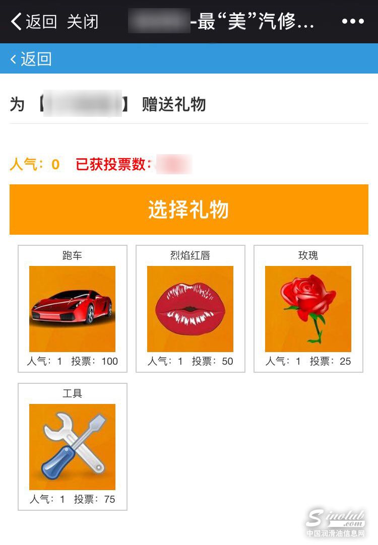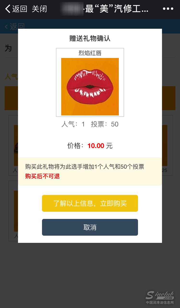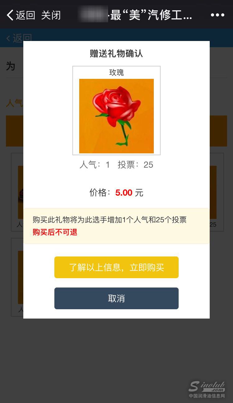 3、选好你要送出的“礼物”,点击“礼物”图片,进入购买页面,确认支付即可为你选择的候选人送出“礼物”。不同礼物可为候选人增加不用数量的票数哦!