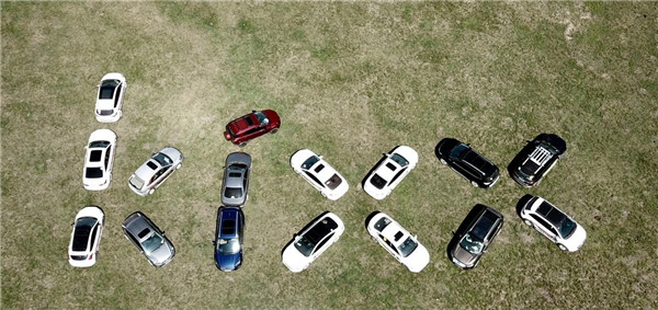 在启动仪式上,巨大的横幅一字摆开,车友会成员共同合影,16辆汽车组成的Kixx造型在草原上格外耀眼。