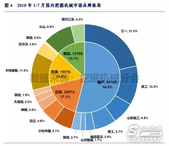 根据中国工程机械工业协会挖掘机械分会统计数据,2018年1-7月纳入分会统计的25家主机制造企业国内市场销售情况如下表所示。在2017年高基数条件下,依然实现快速增长。