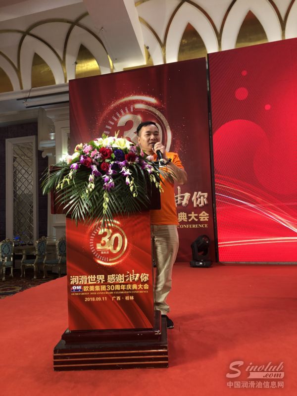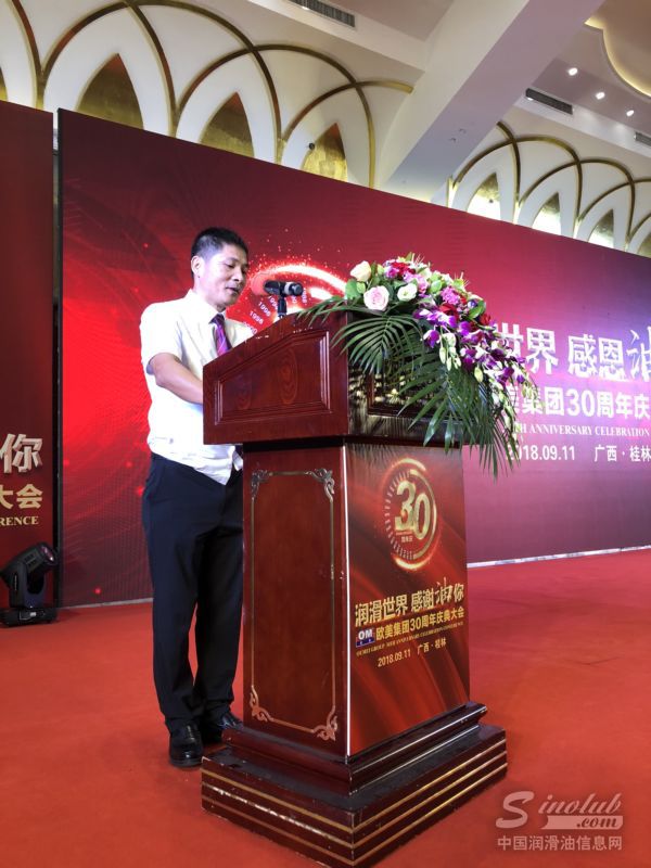 欧美集团公司董事长吕金水先生致辞时表示,30年光辉岁月弹指一挥间。抚今追昔,欧美集团从一个小规模的公司,发展为业内具强大竞争力的企业,步入高速发展的轨道,取得今天傲人的成就,离不开各位公司同仁默默的支持、各位经销商朋友一路风雨相随的厚爱、以及雪佛龙等国际知名添加剂公司做出的贡献。他谨代表欧美集团,热烈欢迎各位嘉宾莅临本次庆典大会,感谢大家多年来对公司业绩的支持与信赖!