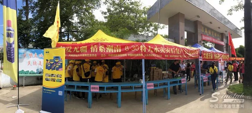 9月15日,由中国润滑油信息网、《润滑油市场》杂志组织发起的“大爱无疆,情系潮汕”救灾复产公益行动启动仪式,在汕头市潮南区司马浦宝晖中学门口如期举办。汕头市有关行业协会领导及多家本土知名媒体出席了本次活动,爱心物资捐赠单位WD-40、卫士石化等派出专业技术人员赶赴现场,为受灾车主、企业代表进行用油示范及车辆、设备维护指导。在活动现场,工作人员筹备了一大批除湿防锈产品进行演示,包括如何使用除湿防锈产品,避免器件水浸短路。据介绍,在当天活动期间,潮阳、潮南的车主可通过扫描二维码关注公众号,上传受灾车辆和行驶证照片,免费领取润滑剂等产品。同时技术服务团队在现场接受登记,免费为受浸企业的工业设备,生产机械,乘用商用车辆等提供润滑油应用技术检测或指导。包括:1、对现有受浸机械设备用油进行抽样检查,判断油品是否还能正常使用;2、对现有受浸机械设备如何进行清洗、更换、保养等用油进行合理指导;3、对现有受浸机械设备、针车针具如何保养防止生锈进行指导。