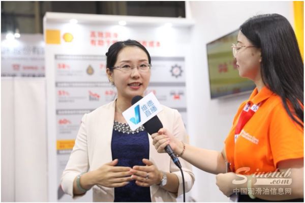 壳牌工业润滑油OEM业务发展团队经理李佳女士(左一)现场接受媒体采访