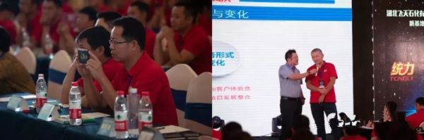在面对经济新常态的大背景下,飞天石化特地邀请了行业实战咨询策划专家、腾飞策划创始人—边腾飞老师为全体经销商分享经销商管理和日常运营的实战经验,并将这个环节列为第二项最为重要的议程,在桂总的致辞完毕后,立即优先安排进行,既表明了飞天石化对推进经销商赋能战略的重视,又表明了飞天石化全心全意依靠经销商队伍的初心不改。