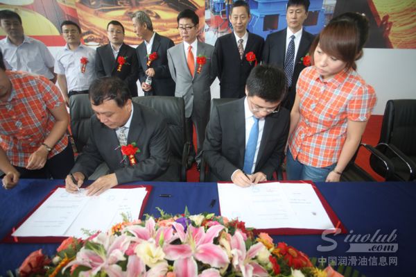 哈广旺董事长杨胜利与壳牌工业润滑油总经理陈斌签署合作协议
