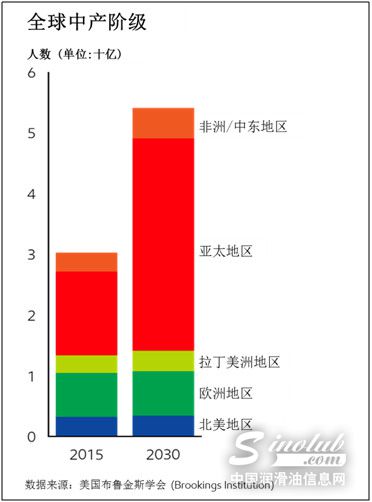 由于中产阶级人口的增长,全球需求的增长率也大幅提升。美国布鲁金斯学会 (Brookings Institution) 调查发现,可划入中产阶级的人数预计在 2015 至 2030 年间增加超过 25 亿,主要集中在亚洲和其他发展中国家及地区。正如上个世纪的发达国家那样,全球中产阶级的崛起将带来新的化工制品需求,包括从家用电器、家用建材到汽车在内的各种化工制品。