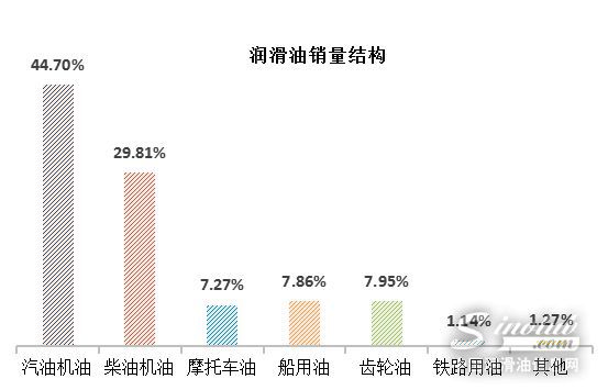 据统计,轿车用润滑油市场规模占车用润滑油市场约 20%,轻型货车用润滑油市场占车用润滑油市场总量约15%,轿车和轻型货车润滑油市场规模的增长率分别超过25%和10%。柴油机油占车用油消耗比例最大,为44.7%。未来中重型柴油车比重将逐渐降低,轻微型柴油车比重继续提高。(中国润滑油信息网《2017中国润滑油行业白皮书》)