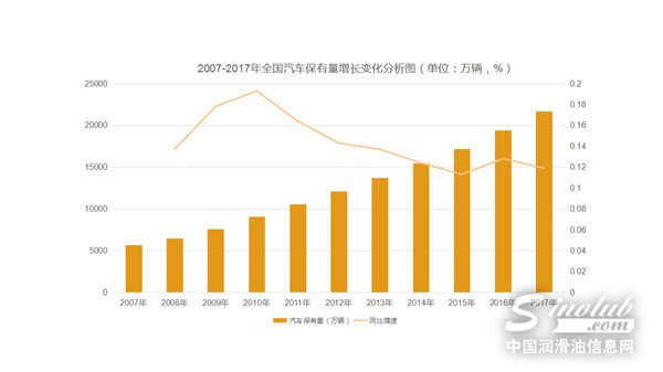 另一方面,持续攀升的汽车保有量与润滑油需求量紧密相关,据研究,汽车保有量和润滑油消耗量的相关系数高达0.984。截至2018年9月底,全国机动车保有量达3.22亿辆,其中汽车2.35亿辆,占机动车总量的72.91%。2018年第三季度新注册登记机动车达741万辆,其中新注册登记汽车达652万辆,由此带来车用润滑油市场规模也“水涨船高”。值得期待的是,我国汽车保有量仍有巨大潜力,由此也为国内汽车用润滑油市场带来了可观的增长潜力。