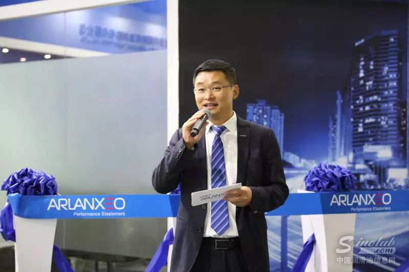 阿朗新科高性能弹性体业务部大中华区销售总监路伯扬在展位开幕式上致辞