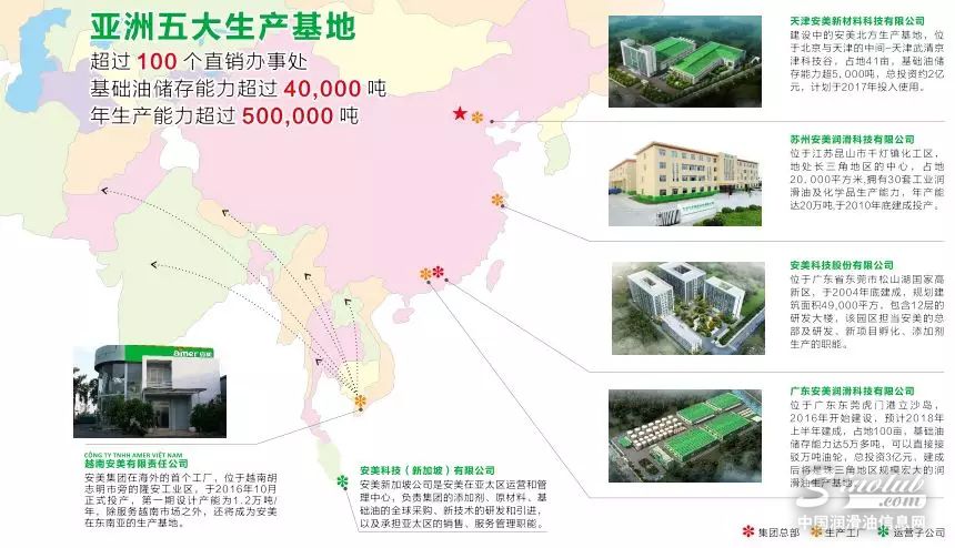近年来,伴随着中国制造业市场纵横驰骋,安美在各地市场也是不断开疆拓土。2004年,安美松山湖工厂建成投入使用;2010年,安美苏州工厂建成;2016年,开始设立华北生产基地,并在越南设立工厂,重点拓展东南亚市场;2018年上半年,安美贵州工厂设立。目前正式签约的华东第二工厂,将安美生产基地形成网络化,让全国性的产品供应和配套服务能力具有更深层次的优势,既是优化生产和发展的需要,也是积极回报华东市场的表现,将直接拉动安美润滑油在华东市场大踏步的前进。