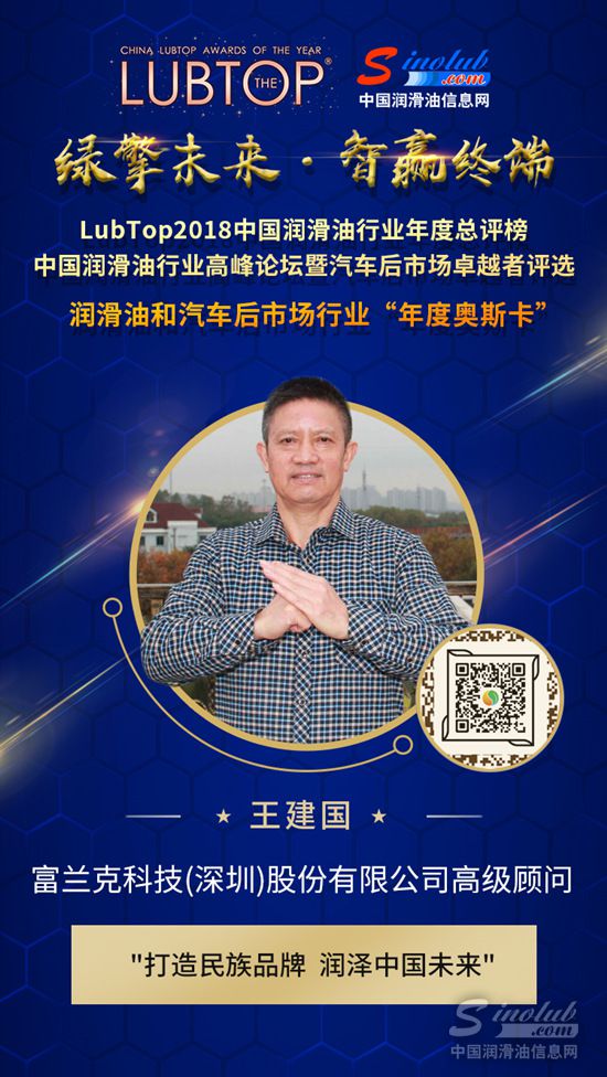 LubTop2018中国润滑油行业高峰论坛重磅演讲嘉宾——来自中国金属加工液领军企业富兰克科技(深圳)股份有限公司高级顾问王建国先生将以对行业的深刻理解为我们解答。