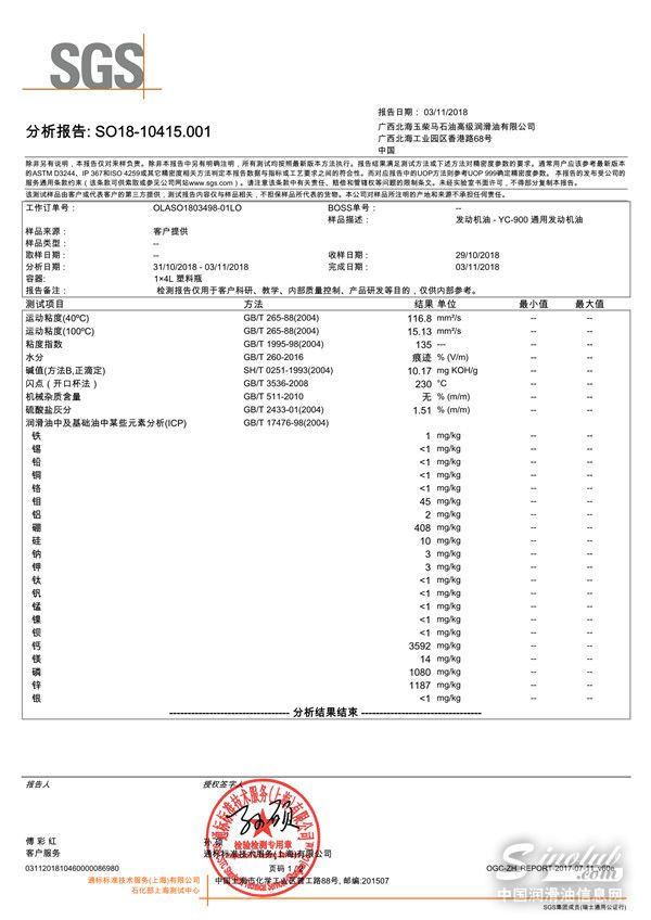 SGS 作为LubTop2018总评榜指定的唯一第三方产品检测机构,为专家评审们提供最公正、最权威、最精准、最有依据的品质报告。每一份品质报告的背后都凝聚着SGS工程师的心血!SGS作为检验、鉴定、测试和认证机构的世界领导者,从1991年进入中国,截止目前SGS石化服务部已在25个地区设立办事处建立超过35个测试中心,石化检测人员超700人,我们致力于提供专业权威的石化检测服务以协助相关行业客户可持续发展。
