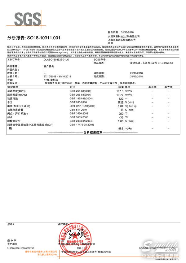 LubTop2018总评榜独家检测机构SGS,作为全球最权威的第三方检测机构,用实实在在的数据说话!