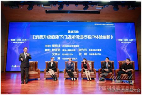 第二场圆桌会议主题是《消费升级趋势下门店如何做客户体验创新》,由资深后市场行业专家蔡桐才主持,爱车小屋总经理钟亚男、车通云执行董事张作元、秒车间CEO艾晓云、汽修宝典CEO贺聪、车点点联合创始人王琳参与了本场的讨论。嘉宾们分享了自己对于消费升级的理解,外部中美贸易战及全球一体化,内部改革和产业结构升级的大背景下,中国3亿的中产阶级是消费升级的最大源动力,对于汽车服务行业的消费升级和客户体验的创新,嘉宾认为只有牢牢抓住客户需求,借鉴互联网思维去提升和迭代用户体验场景和路径,完善产品和服务,才是根本解决之道。