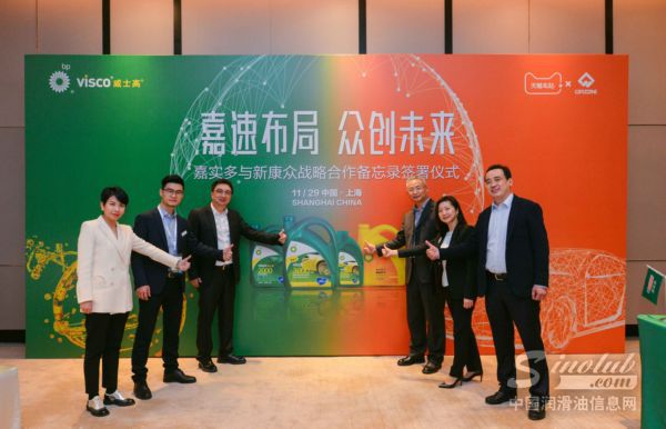 2018年11月29日, “百年润滑专家”嘉实多携手汽车后市场供应链专业服务商新康众,联合签署战略合作备忘录,就在快速变化的汽车市场环境下实现全新布局,达成战略合作意向。由此,两大分别来自润滑油及供应链领域的行业创新翘楚,将逐步开启全面深入合作,凭借“天猫车站”认证体系的优势资源,协同重塑行业标准,共同开创汽车消费市场产品供应及服务的新局面。嘉实多中国销售总监陈庆、业务拓展总监李海英、市场总监戴思慧,新康众CEO商宝国、COO蔡永志(李逸)、润滑油事业部总经理高飞、市场和产品部总监张健等双方高层代表共同出席了本次签约仪式。