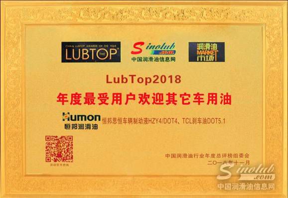 恒久品质 立业兴邦—— 恒邦润滑油斩获LubTop2018年度最受用户欢迎其他车用油奖