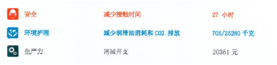 通过采纳埃克森美孚工程师的建议,重钢西昌矿业公司不仅改善了齿轮箱的运行状况,减少了能耗,延长了换油周期,更改善了污染问题。重钢西昌矿业公司因此每年节省了20,361元开支,减少了润滑油消耗705千克,减少二氧化碳排放25,280千克。如此可观的节能成果,也让美孚®优释达®赢得了客户的肯定与信任。