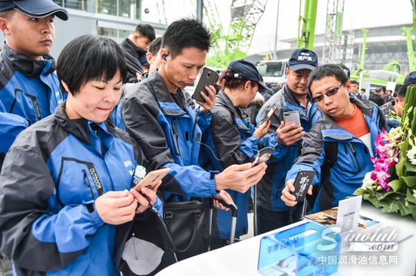 铁甲用户参展团成员认真倾听美孚®优释达®服务讲解