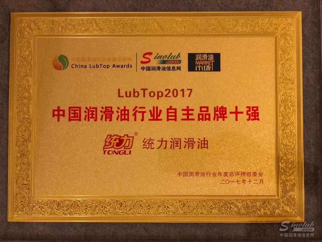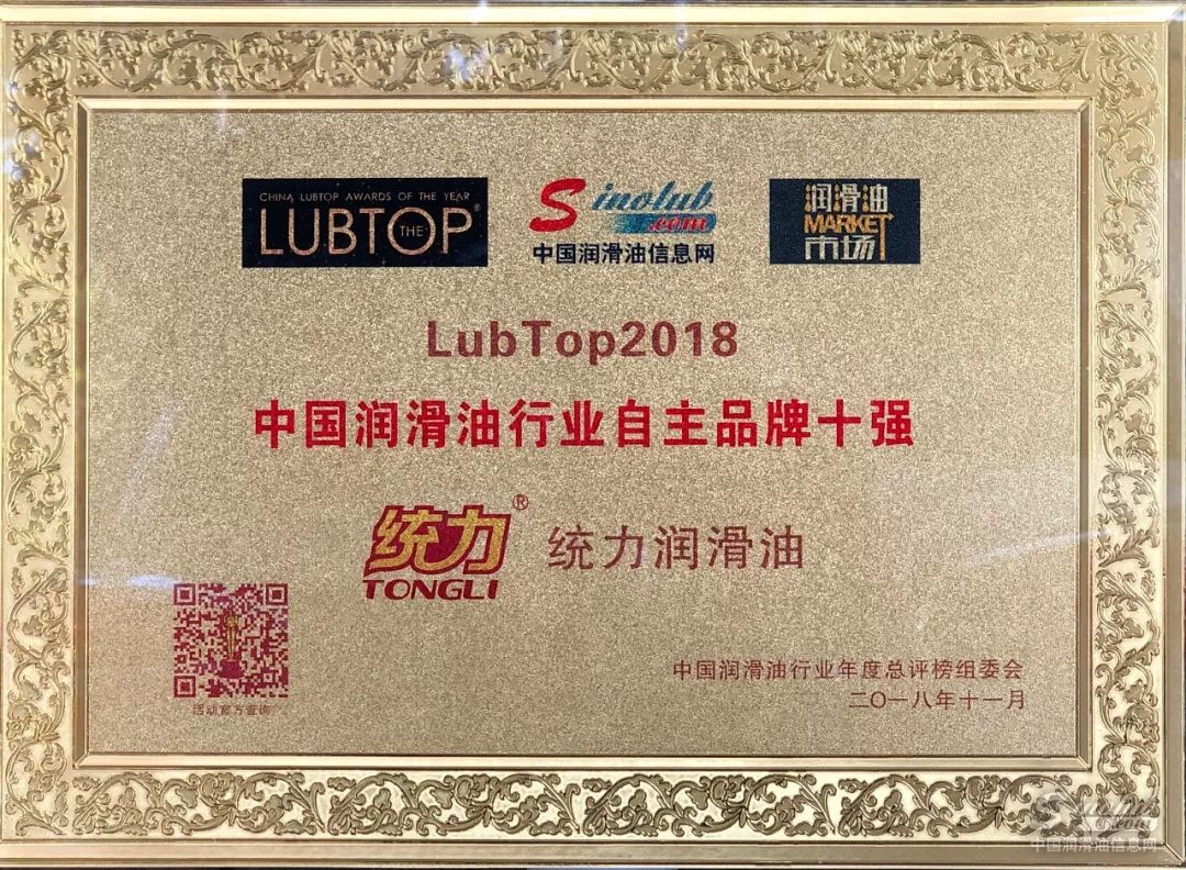 2018年11月26日,LubTop2018中国润滑油行业年度总评榜在上海隆重揭晓。作为中国润滑油行业“年度大考”的标杆性评选活动,现场云集了中国主流润滑油企业领袖、协会领导、专家学者、行业媒体等各届重量级嘉宾,统力润滑油再次荣获“中国自主品牌十强”,统力公司总经理吴建华先生受邀出席并上台领奖。