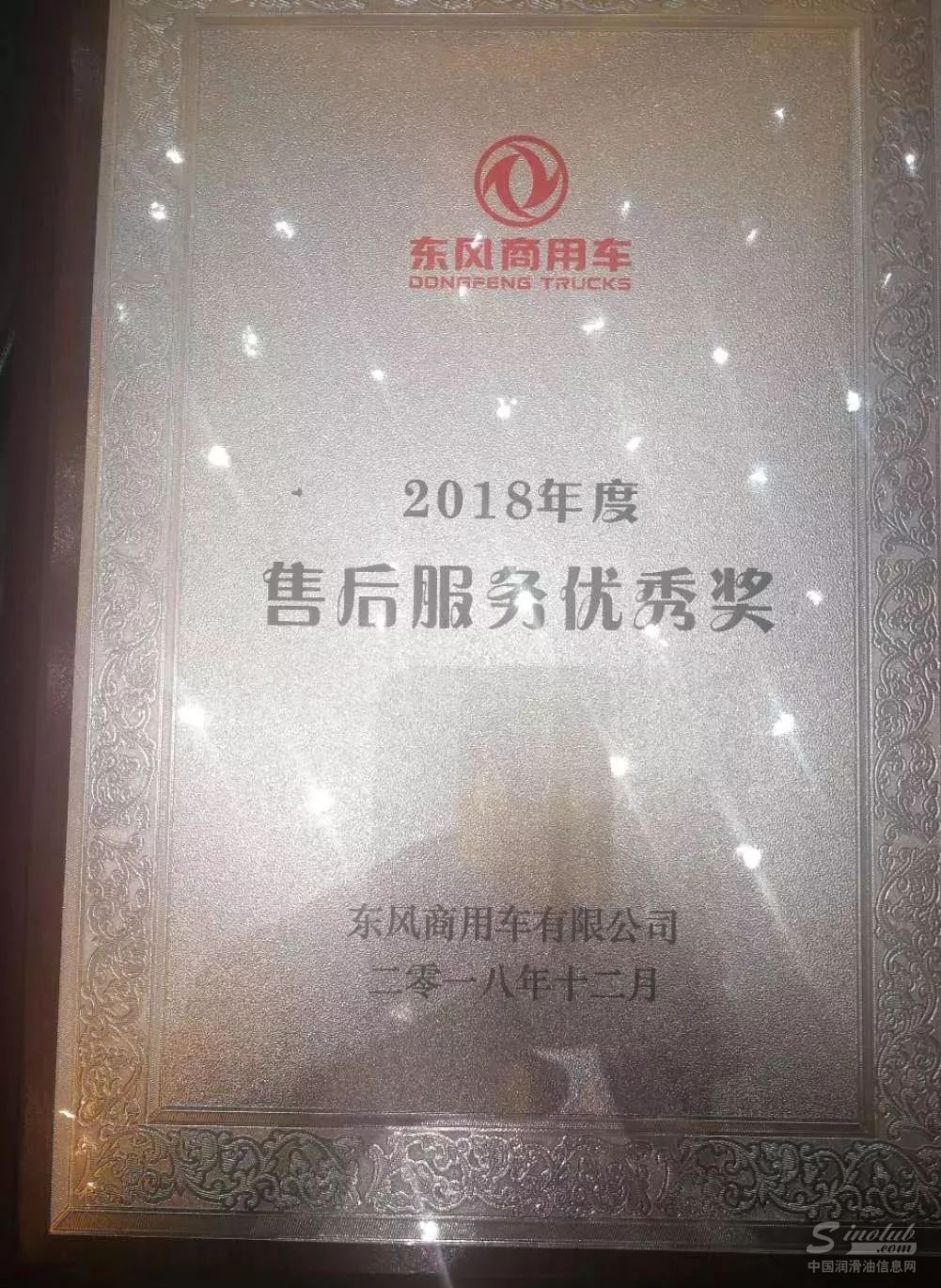 可兰素荣获东风商用车2018年度售后服务优秀供应商奖