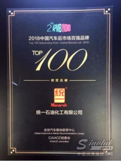 统一润滑油连续第三年斩获“2018年度润滑油行业十大品牌”殊荣。