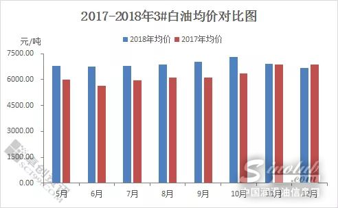 与去年同期相比,在原油高价的有力支撑下,2018年白油均价普遍高于去年同期。但近期由于原油大跌,拖累白油价格大幅下行。据卓创统计,截止2018年12月25日,国内3#白油均价为6683元/吨,与去年同期相比下跌2.35%,年内涨幅尽数回吐。