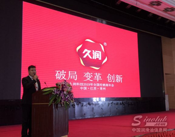 壮志凌云,气势如虹!新年伊始,中国自主润滑油品牌强军——上海久润润滑油以奋发风貌,昂扬之姿,于今日在江苏常州召开主题为“破局、变革、创新”的2019年经销商年会,携手全国经销商伙伴回顾2018所取得的成就,展望2019年新趋势、新规划、新发展!久润润滑科技(上海)有限公司董事长刘长宏先生、总经理张金松先生领衔公司员工、合作企业和经销商伙伴,以一场场别开生面的主题演讲、一次次激动人心的品牌互动引爆年会现场,更有一系列全新升级的产品系列惊艳亮相。作为融入汽车和机械基因的润滑油全媒体平台,中国润滑油信息网(www.sinolub.com)、《润滑油市场》杂志作为独家行业媒体参与到本次会议中,见证久润科技崭新一年的盛大开启!