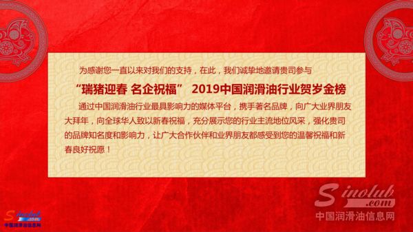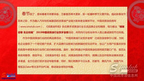 “瑞猪迎春 名企贺岁”2019中国润滑油行业贺岁金榜盛大开启
