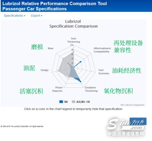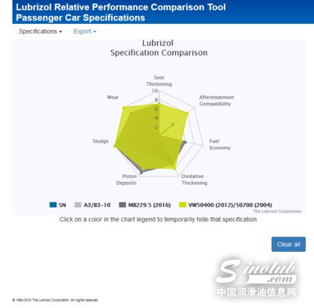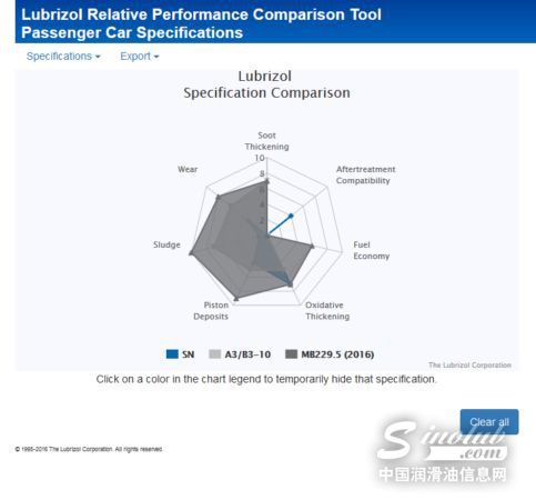 秉持有话直说的原则,我们不卖关子,直接亮出“杀手锏”:全球知名添加剂企业路博润开设的“路博润乘用车润滑油标准相对性能比较工具”(Lubrizol Relative Performance Comparison Tool for Passenger Car Specifications),直观比较各标准的差距。
