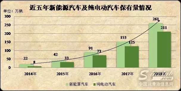 新能源汽车保有量达261万辆,全年增加107万辆。2018年,全国新能源汽车保有量达261万辆,占汽车总量的1.09%,与2017年相比,增加107万辆,增长70.00%。其中,纯电动汽车保有量211万辆,占新能源汽车总量的81.06%。从统计情况看,近五年新能源汽车保有量年均增加50万辆,呈加快增长趋势。