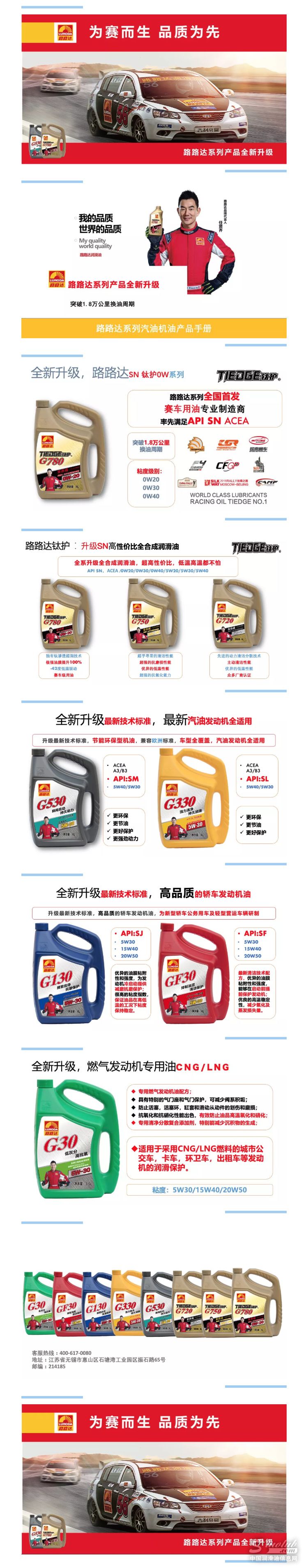 2019年路路达系列汽油机油全系列升级面向民用市场,皆在为广大追求品质车生活的车主提供顶级的产品使用体验。