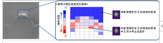 通过使用X射线小角散射法对片状合成橡胶试验品凹口处橡胶密度变化的观测,我们发现凹口顶点处的橡胶密度要低于距离该顶点较远其他部位,这表明凹口顶点处的橡胶内部产生了很多“孔洞”。由此可以判断出,当在水平方向上拉伸橡胶试验品时,凹口顶点处也即橡胶被撕裂的部分出现了“孔洞”,而且该“孔洞”与橡胶失效有直接关系。