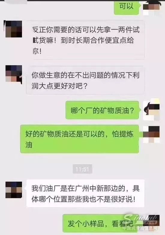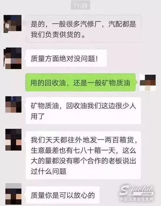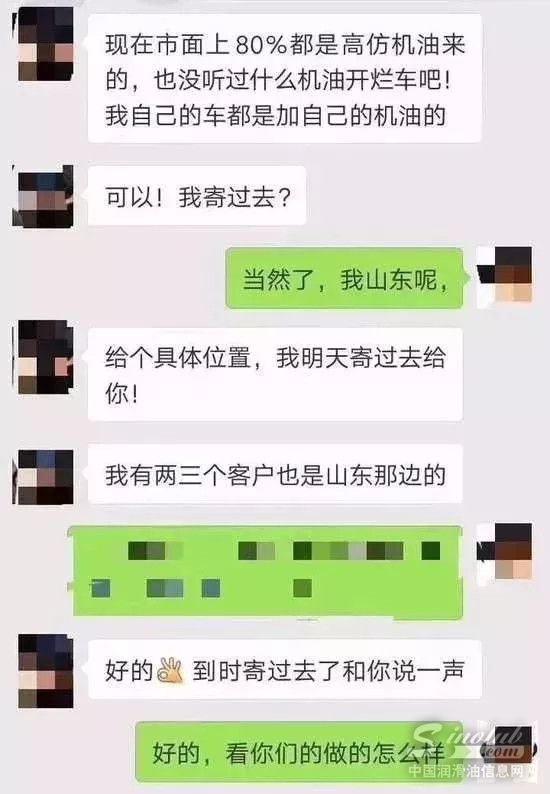这是网传的一组高仿机油批发商微信聊天截图,不但爆出了机油行业的内幕,而且还曝光了高仿机油的批发价。