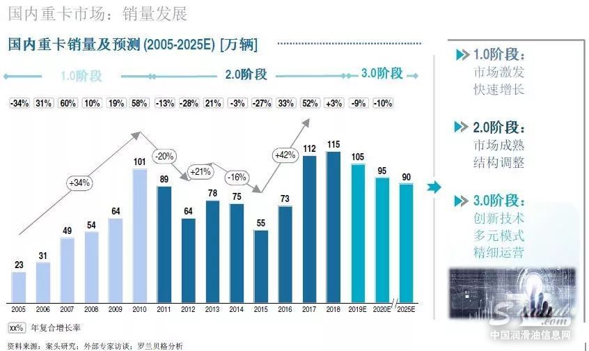 近日,罗兰贝格发布《2019年中国重卡发展趋势报告》,结合全球及中国重卡市场的销售波动,针对中国重卡市场上游技术、下游客户及主机厂发展的十大趋势,预测中国重卡市场即将进入以创新技术、多元模式、精细运营为特点的3.0时代,并为企业提供了如何在重卡3.0时代赢得先机的对策。