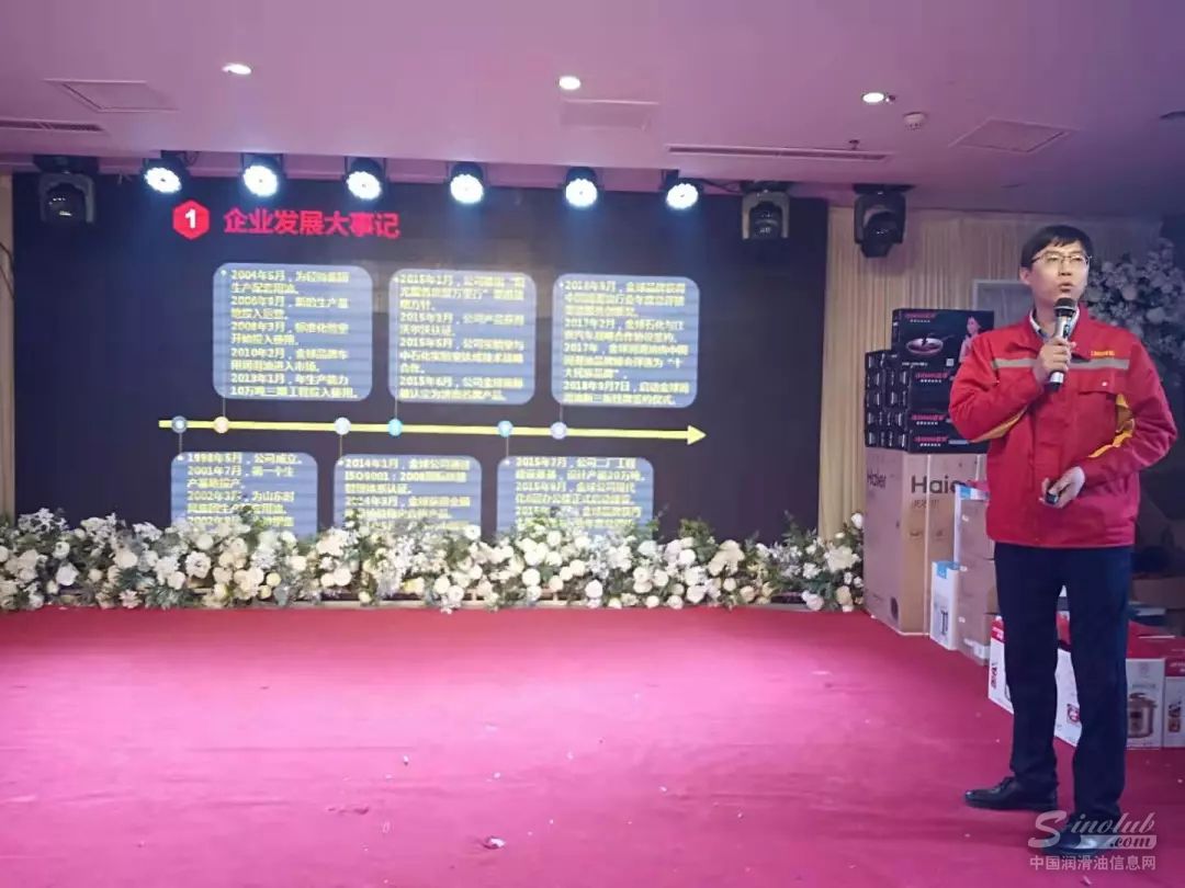 徐总监首先对一直以来支持和关注金球的新老客户表达了感谢和欢迎,然后就金球企业文化、发展历程、产品种类、未来方向等内容进行了详细阐述,并从多角度,由浅入深分析了2019年润滑油市场前景,给现场来宾吃下了一颗定心丸。