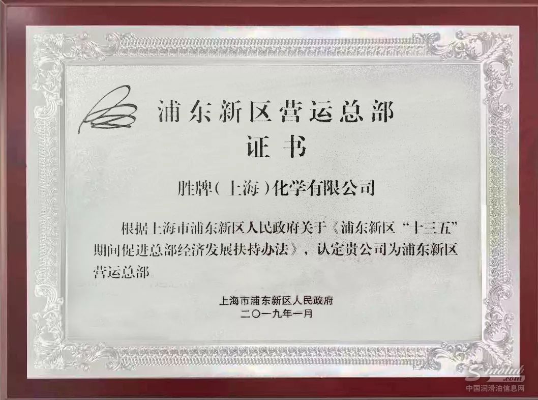 近日,第五届浦东总部经济十大经典样本颁奖典礼在上海国际会议中心圆满落幕。在此次颁奖典礼上,为2018年新认定的浦东大企业总部、区域性总部、营运总部、高成长性总部和国际机构地区总部颁发了荣誉证书。胜牌凭借多年的努力和对浦东新区经济建设的卓越贡献,在众多参选企业中脱颖而出,荣获了浦东新区“区域运营总部”认定。