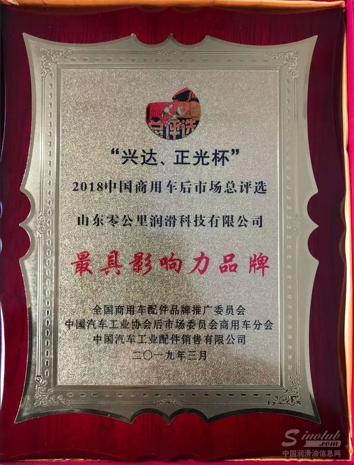 这项荣誉是中国商用车后市场对于零公里润滑油品牌的认可
