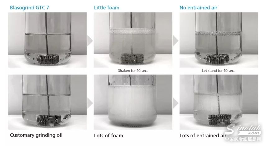具有高磨削性能的新品Blasogrind GTC 7则是专为工具磨削加工而研发的。该磨削油的基础油由天然气转化得来,精密的配方确保了更高的切屑去除率、更长的使用寿命以及极高的表面质量。最重要的是,空气快速释放性可确保加工实现最佳磨削性能,防止刀具产生微裂纹,并且可应用于小型冷却液箱,不会因产生大量气泡而停机。在CIMT中国国际机床展览会的展位,您可以现场体验磨削油搅拌器,并亲自见证Blasogrind GTC 7卓越的消泡性能。为了能清晰看到磨削工艺并营造舒适的工作环境,这款高性能磨削油具有无色无味且透明的特点。