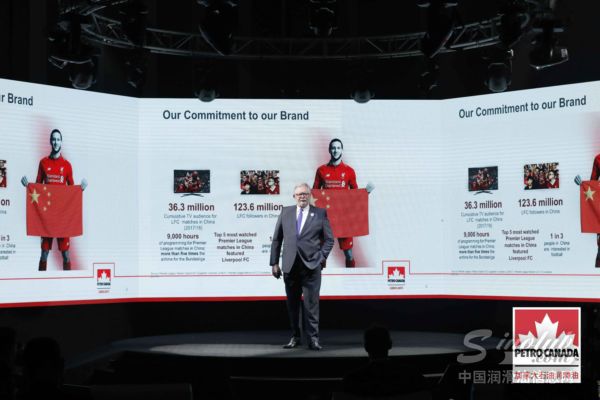 我们正在通过各种渠道全方位扩大品牌在全球及中国本土的知名度。最受瞩目的是与利物浦足球俱乐部的合作。作为利物浦足球俱乐部的全球合作伙伴,加拿大石油润滑剂公司能够在覆盖超过1.23亿球迷受众的各种载体进行品牌推广。足球届传奇人物、前利物浦门将布鲁斯·格罗贝拉(Bruce·Grobelaar)远道而来出席了这一重要活动,融汇两大世界级品牌的实力和理念。