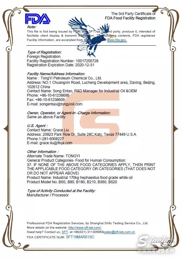 食品领域“王牌认可”:统一食品级白油获美国FDA认证!