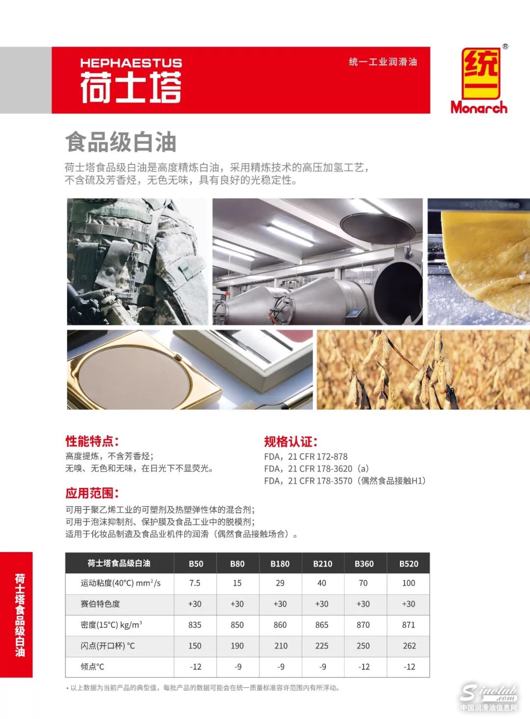 近日,统一荷士塔食品级白油获美国FDA国际认证,这是统一工业润滑油向全新领域的一次“进军”,更是统一石化将向食品领域提供润滑解决方案的重要突破,将为客户和消费者带来更高品质、更全面的产品与选择。