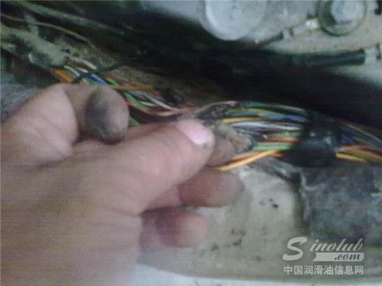 紧接着拆掉边门底座饰板,顺着保险盒端子插头处拉出通往后面的线束,接着在靠近侧护板地板胶中部发现问题,该处有一束线束整体烧焦烧断粘连到一起了,其中烧断路的就有正在查找的那根黄色红茎燃油泵供电线束。用手一捏线皮哗哗直掉,已经烧断,到这里可以肯定就是此处烧断粘连导致行驶中突然熄火无法启动的直接原因了!清理此线接上仔细包扎过后,重新启动马达,后边燃油泵发出嗡嗡工作的声音,到这里毛病就彻底排出了。只等他们还原回装部件了...