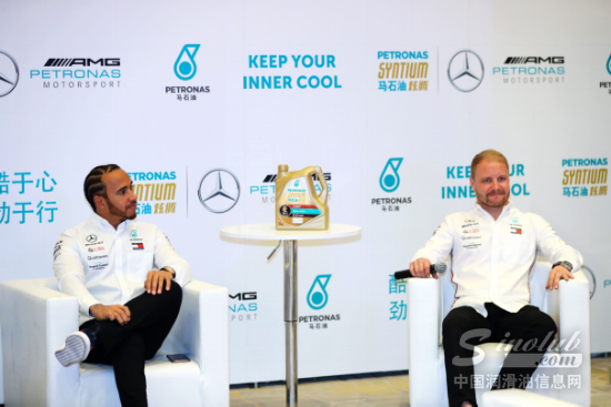 梅赛德斯-AMG-马石油F1车队的车手刘易斯–汉密尔顿和瓦尔特里–博塔斯也来到发布会现场,向广大媒体和马石油客户代表展现了他们对马石油润滑油的支持和信赖。