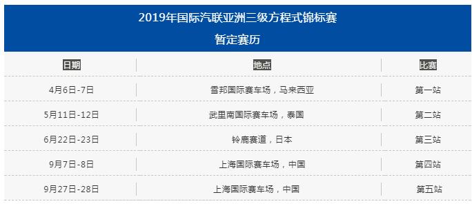 国际汽联亚洲三级方程式锦标赛2019赛季第一站的比赛于2019年4月6日-7日在马来西亚雪邦国际赛车场举行。