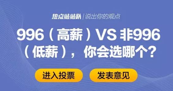 有媒体发出投票,“‘996’(高薪)VS非‘996’(低薪),你会选哪个?”