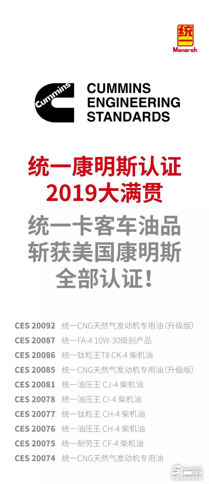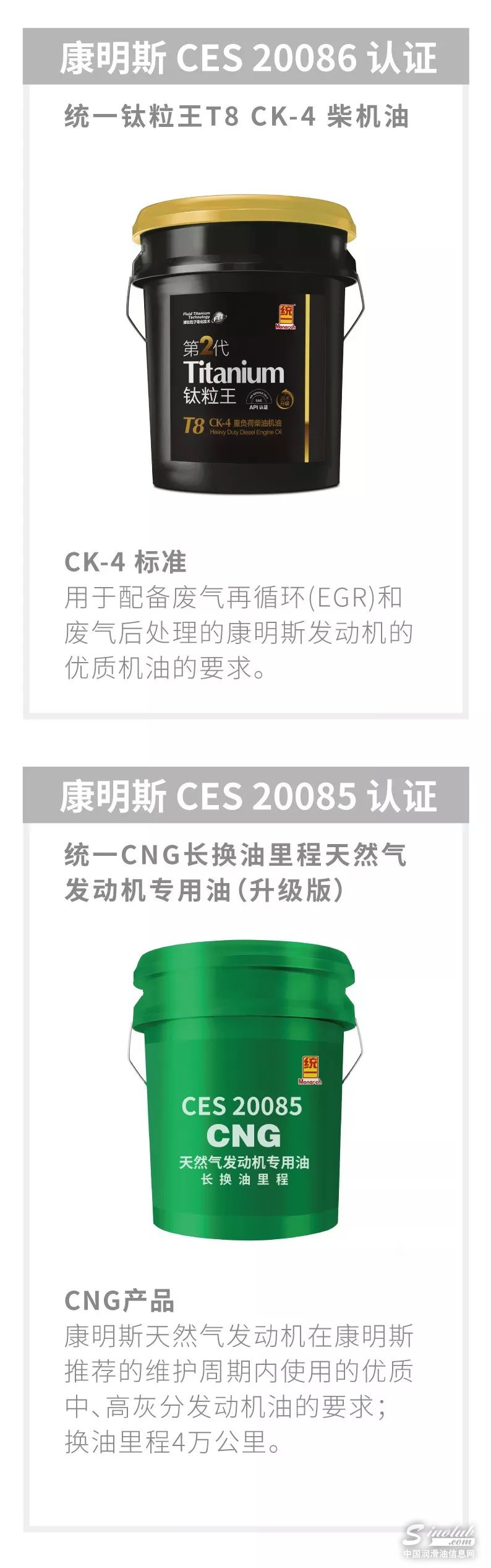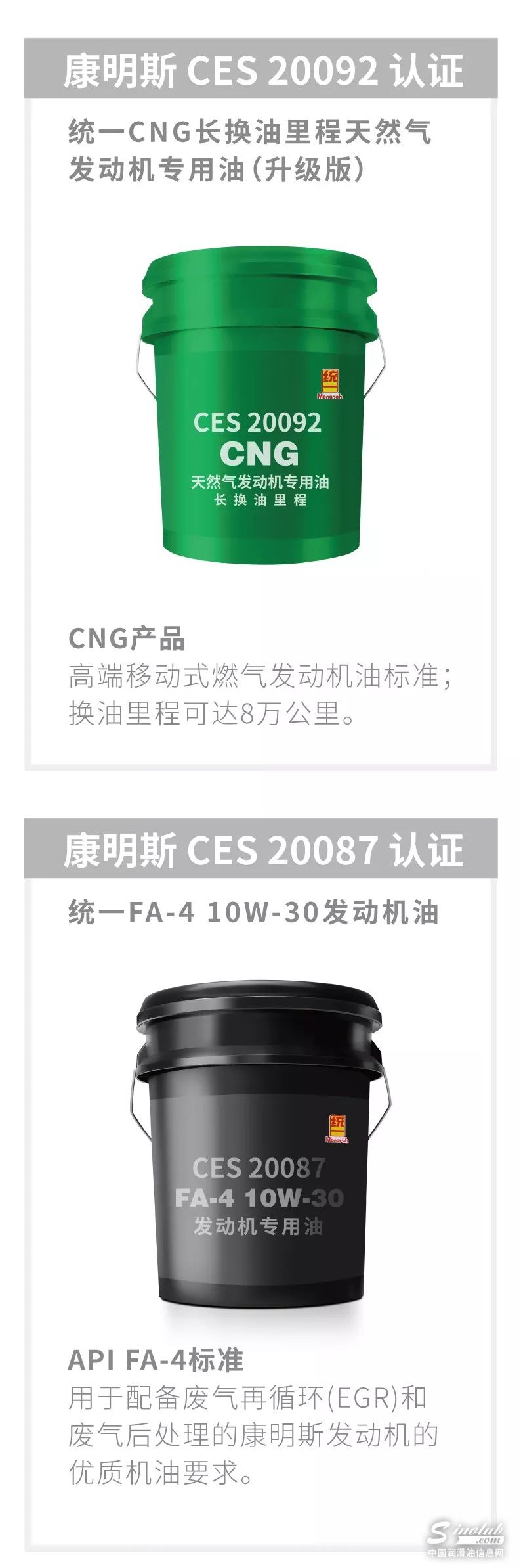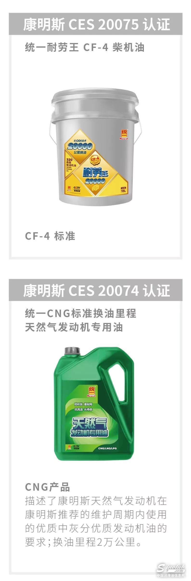 近期,统一CNG天然气长换油里程专用油成功通过康明斯CES-20092认证后,