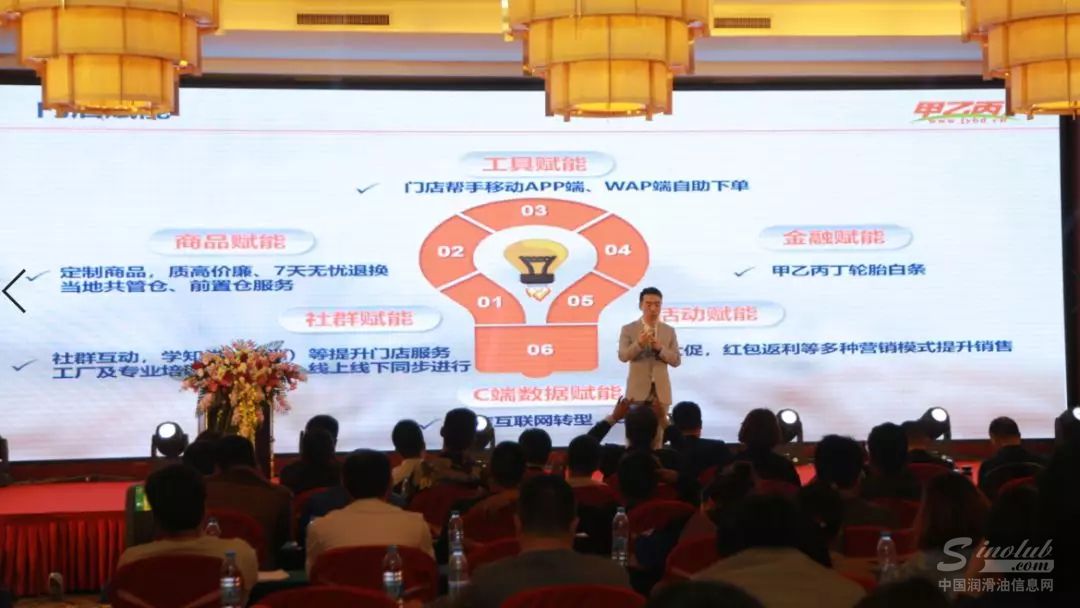 阮总在致辞中表示,甲乙丙丁网由行业19家行业股东发起,是传统行业+互联网,o2o深度融合的汽车后市场全产业链综合服务平台。