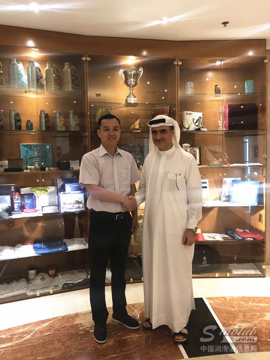青岛橡胶谷能源发展有限公司常务副总经理李占军先生和阿联酋国家石油公司全球副总裁穆罕默德﹒埃尔萨德克合影,埃尔萨德克先生也是18年伊佩克润滑油全球上市发布会的出席贵宾