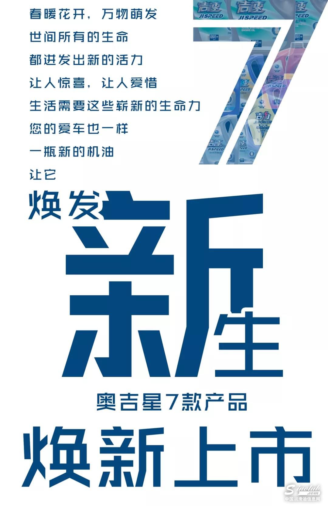奥吉星发布七款新品,包括“金吉速”全合成发动机油SN+,“银吉速”全合成发动机油SN,“蓝吉速”合成发动机油SN,“红吉速”合成发动机油SL,“吉力系列特黑金刚”CJ-4,“吉力系列特黑金刚”CI-4,“吉力系列金刚”CH-4。